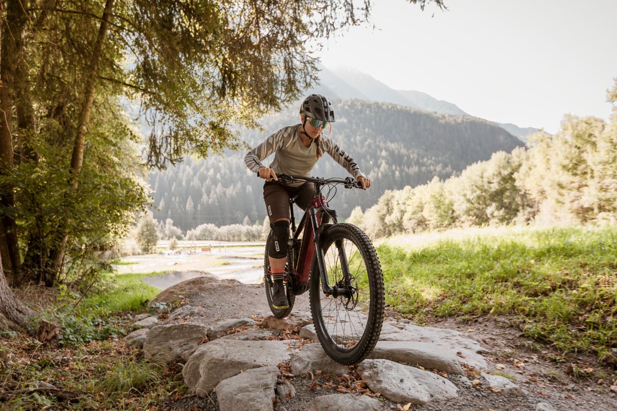 Es geht um Balance und Geschicklichkeit, um das Überwinden von kleinen Hindernissen, richtiges Schalten, Brems- und Kurventechnik sowie nicht nur um das Bergab-, sondern auch das Bergauffahren: Der Uphill-Flowtrail durch den Wald stellt unter Beweis, wie viel Spaß es mit dem eBike macht bergan zu fahren.