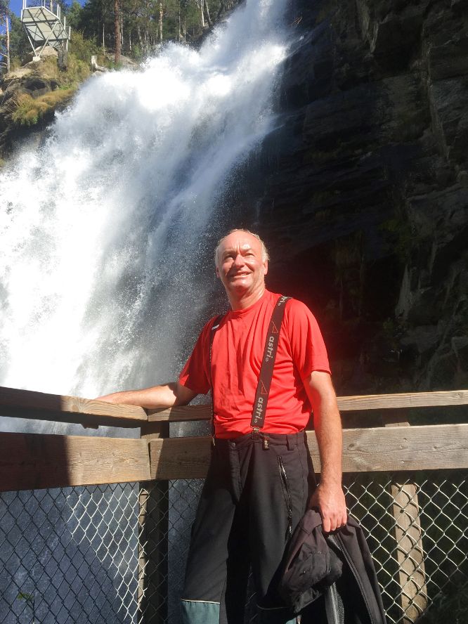 Und dann donnert er uns mit Urgewalt entgegen – der höchste Wasserfall Tirols. Eine kühne Treppenkonstruktion aus Stahl führt hautnah am Fall entlang, der sich 159 m in die Tiefe stürzt. Auf den 728 Stufen legen wir Pausen auf zwei Hängebrücken und fünf Aussichtsplattformen ein. Auf der dritten, der „Ionenplattform“, atmet Dominique den „Stuiben“, der dem Wasserfall seinen Namen verlieh, tief ein: „Es ist wissenschaftlich bewiesen“, sagt er, „dass der Wasserstaub eine positive Wirkung auf Atemwege und Kreislauf hat.“