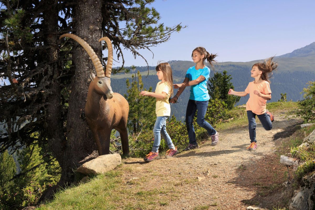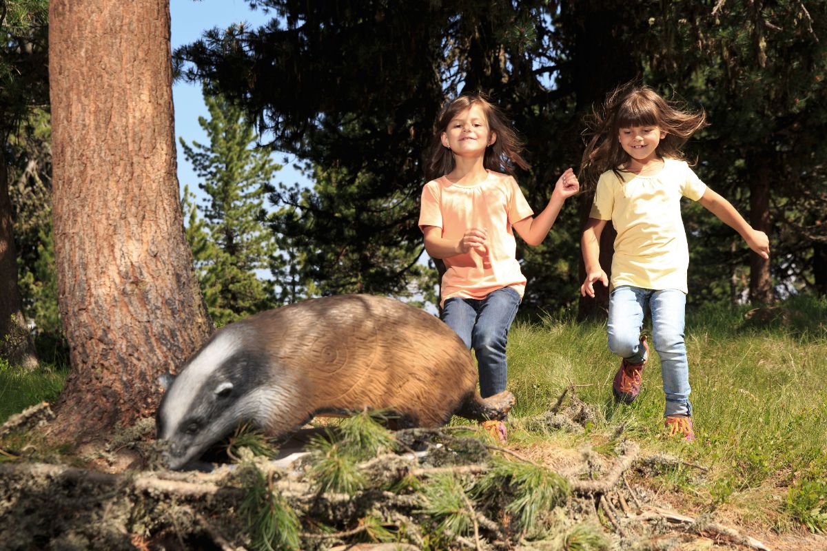 Wer immer schon wissen wollte, was der Unterschied zwischen Hirsch und Reh ist, wie der Speiseplan vom Fuchs aussieht und warum Steinböcke steiles Gelände lieben, ist hier richtig. Der Themenweg „Auf den Spuren der Wildtiere“ startet im hinteren Bereich des WIDIVERSUM und führt kleine Naturforscher durch den Wald, wo sie zehn redseligen Exemplaren verschiedenster Tierarten begegnen.