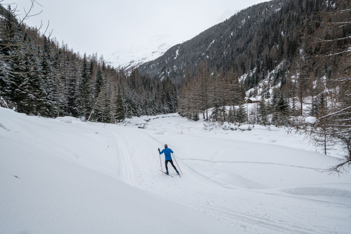 In Gries im Sulztal, der „oberen Etage“ von Längenfeld, locken schneesichere Höhenloipen alle „Ausdauer-Tiere“ auf zwei Latten, ihre Kondition nochmals zu verbessern – die imposante hochalpine Landschaft entbehrt für die Anstrengungen.