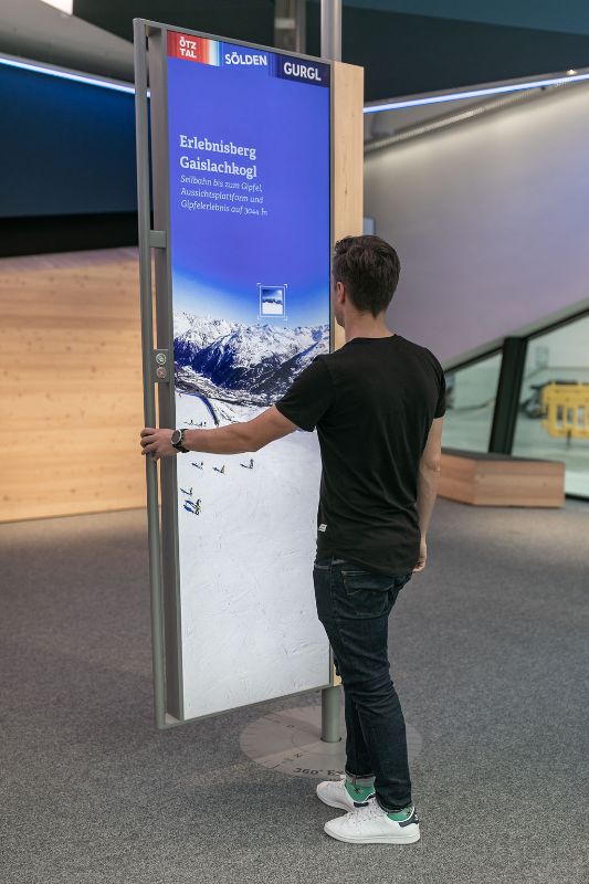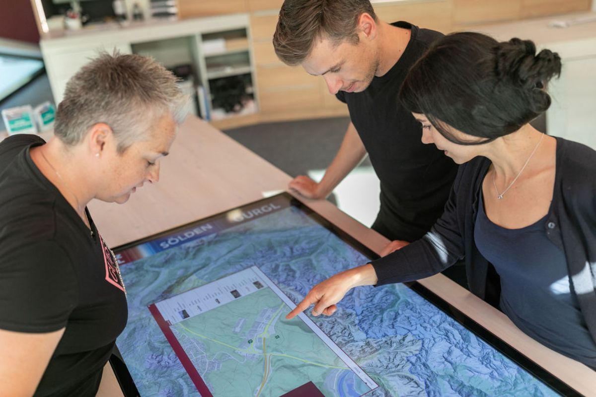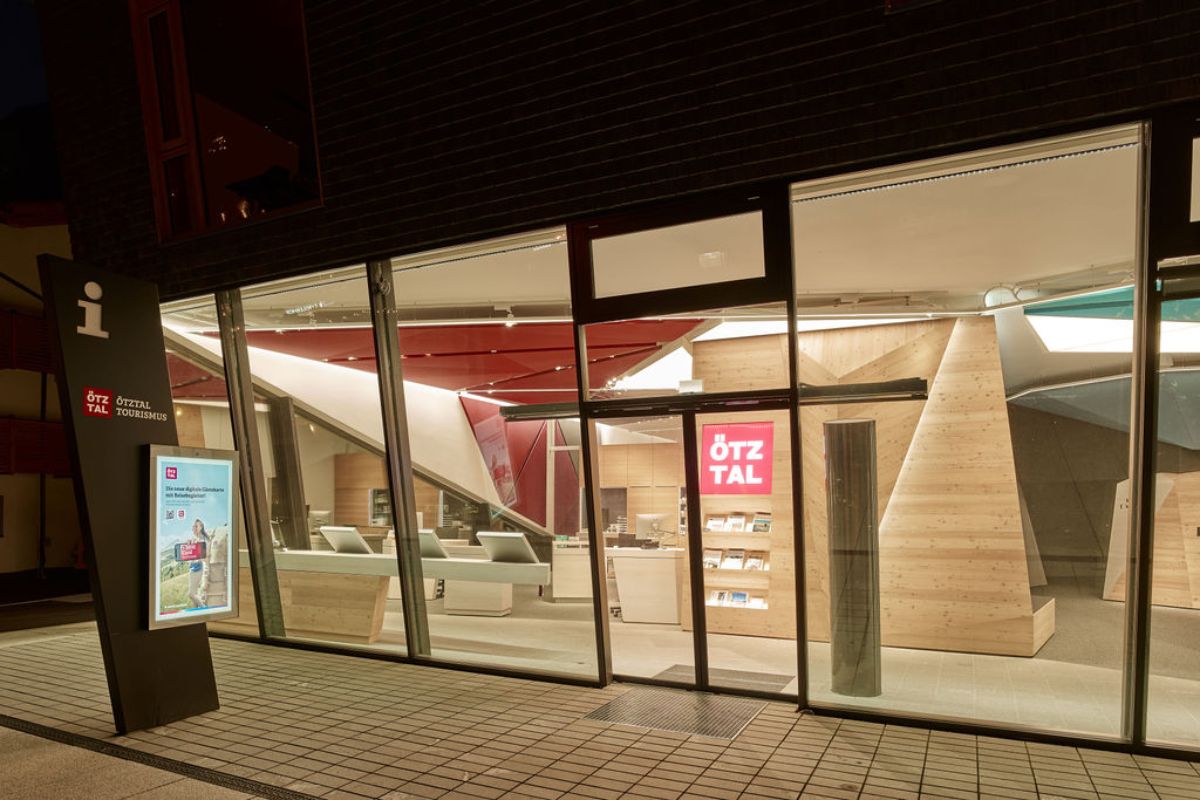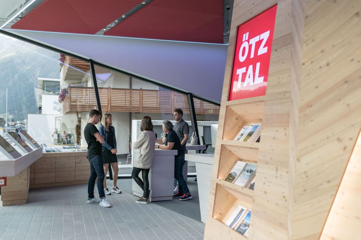 Das von Architekt Johann Obermoser konzipierte Gebäude überzeugt nicht nur aus ästhetischer Sicht, sondern vor allem durch seinen funktionalen und zukunftsweisenden Charakter. Digitale und interaktive Erlebnis- und Serviceangebote in den Innen- und Außenbereichen machen das neue Servicezentrum zur Benchmark für andere Regionen. In Verbindung mit dem neu geschaffenen, verkehrsberuhigten Platz und der verbreiterten Brücke über die Ötztaler Ache hat Sölden eine reizvolle Flaniermeile für Einheimische und Gäste gewonnen.