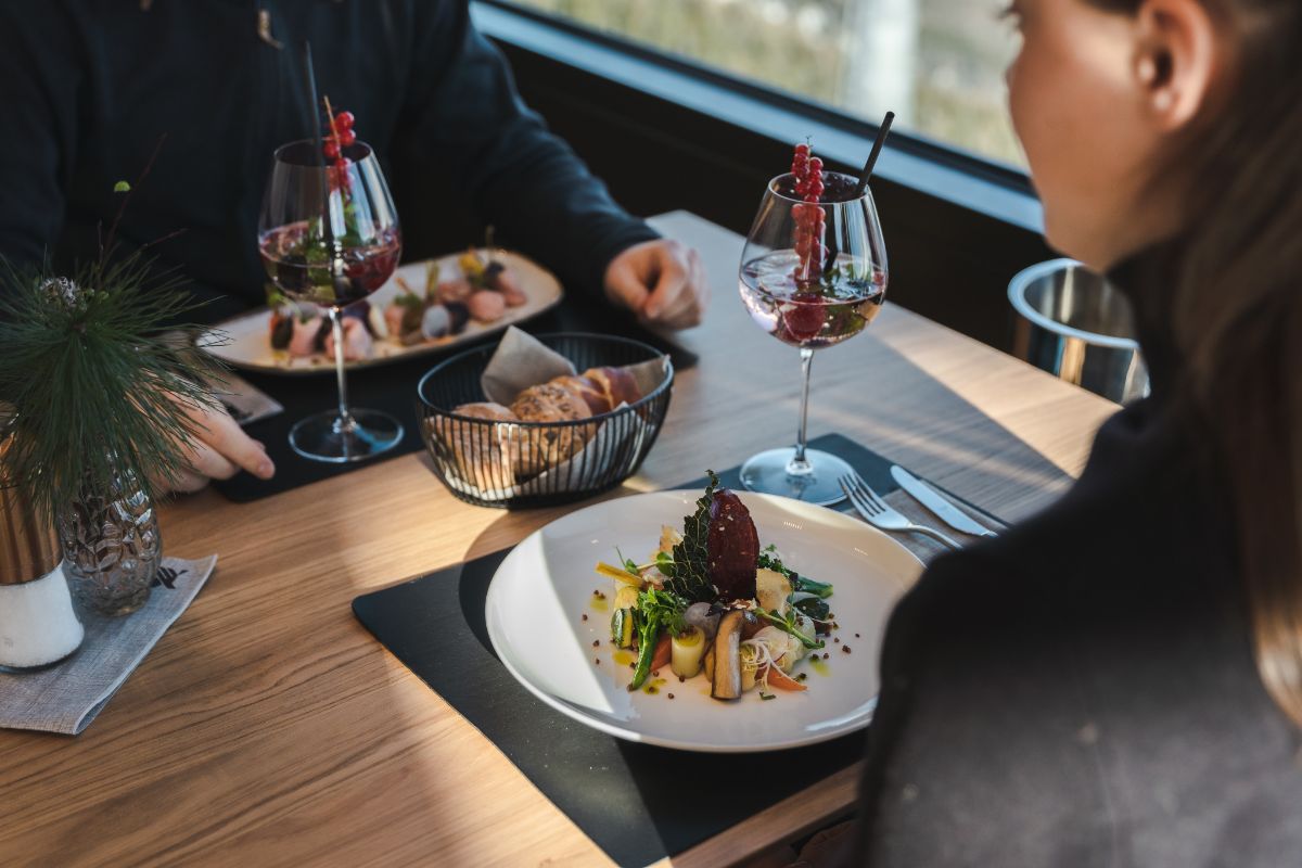 Wo exquisite regionale Küche, erstklassiger Service, moderne Architektur und atemberaubende Ausblicke aufeinandertreffen: Das direkt an der Gaislachkogl-Mittelstation gelegene und 2021 neu eröffnete FALCON À-la-Carte-Restaurant mixt all diese „Zutaten“ und serviert dir ein Gourmeterlebnis, das weit über den Tellerrand hinausreicht.