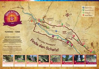 Feldkögele loop hiking tour (200 altitude meters): From the village center the moderately climbing and later descending trail leads partly through the larch forest to Feldkögele (2018 m). Return to Vent through the forest to the federal road. Total walking time: approx. 2 h. The child-friendly treasure hunt also runs along this route - treasure maps available from Information Vent.