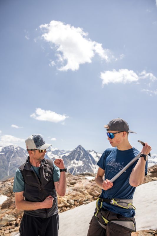 As the name suggests, you don't need any previous experience on similar mountain tours for this package. Our specialists will guide and accompany you safely through the adventurous glaciers and three thousand meter high peaks. All the necessary knowledge such as knot and rope technique, crampon technique and correct glacier crossing will be taught on site. Nevertheless, the tour to Fluchtkogel with 2 days on the glacier is not a walk in the park. In order to cope with the physical effort, you should be an experienced hiker and in a very good physical shape - walking times of up to 6 hours should not overwhelm you. This tour is just right for you if you want to take mountaineering to the next level - without any organizing, without risks, just focusing on the mountain scenery and enjoying the tour.