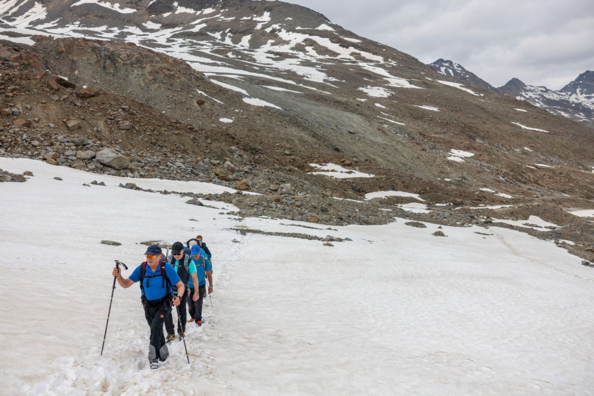 Here we go! After a final equipment check, the ascent to the first stage of the main tour begins: the Similaunhütte. On the way there, you will make a stopover at the Martin Busch Hütte.